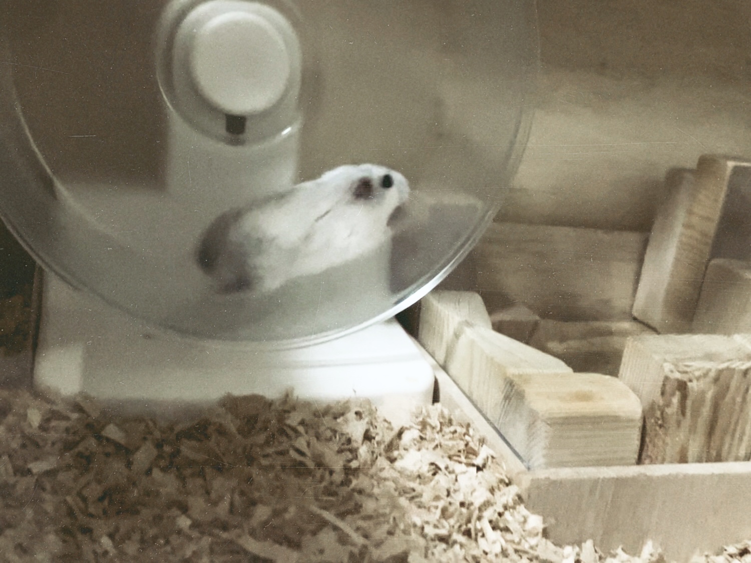 今日は、洗濯おばさんはお友達とおでかけ。設計おじさんもパッチワークばあちゃんとお出かけ。ということは……はい、今日はハクの天国です。デッキの上を風が通り抜け、お部屋には静けさだけ。誰にも見つからず、誰にも止められず、ハクは思う存分、回し車でサイクリング。小屋を抜け、洞窟を駆け抜け、ごほうびの隠しておいたヒマワリの種をひとつ、ほっぺにイン。今日は、誰にも邪魔されない、ハクの天国です。